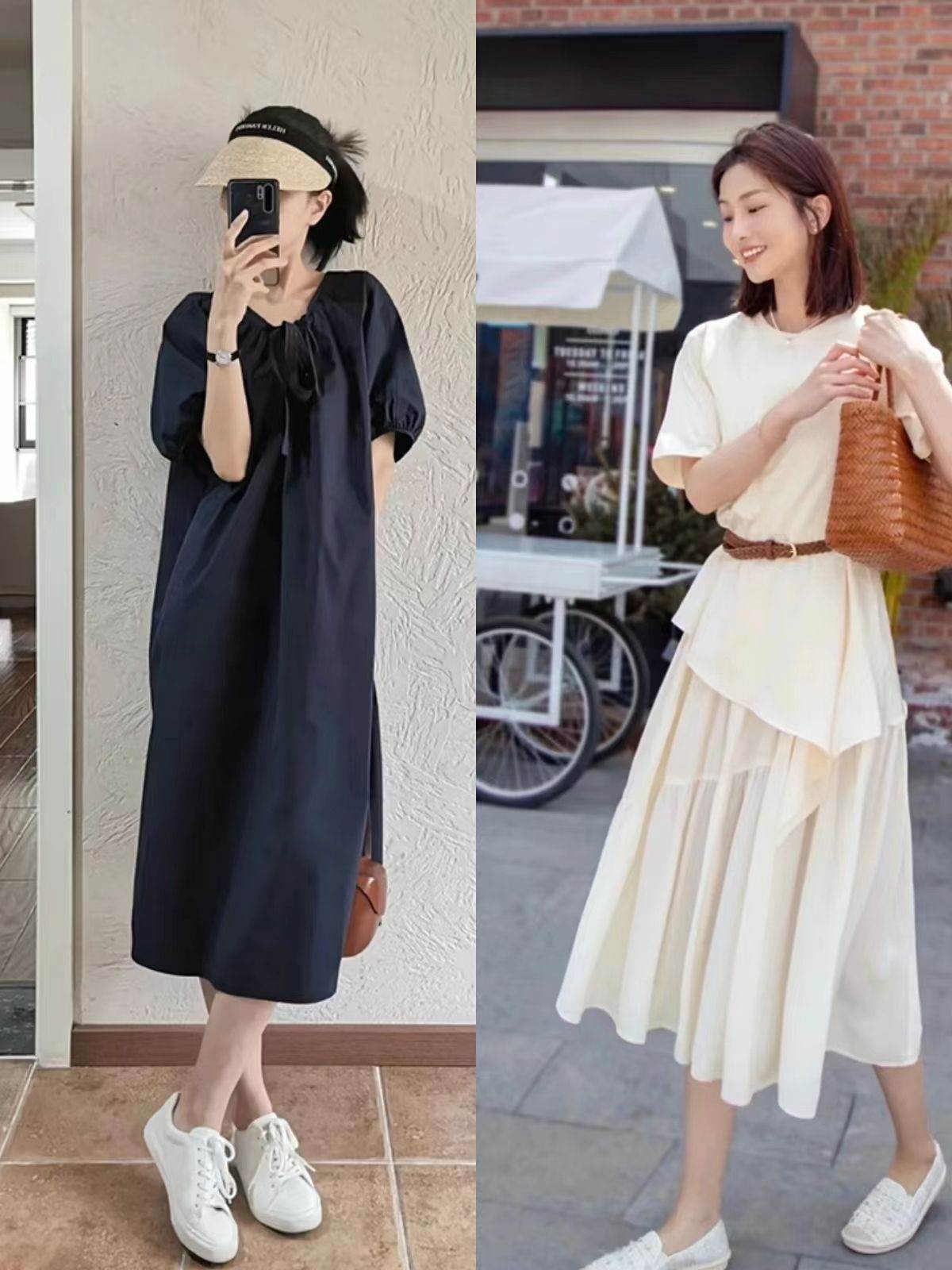 裙子款式簡約的純色裙子勝在舒適百搭,視覺上耐看輕盈,這類型裙子雖然沒有碎花裙耀眼,卻更能體現造型的簡約之美