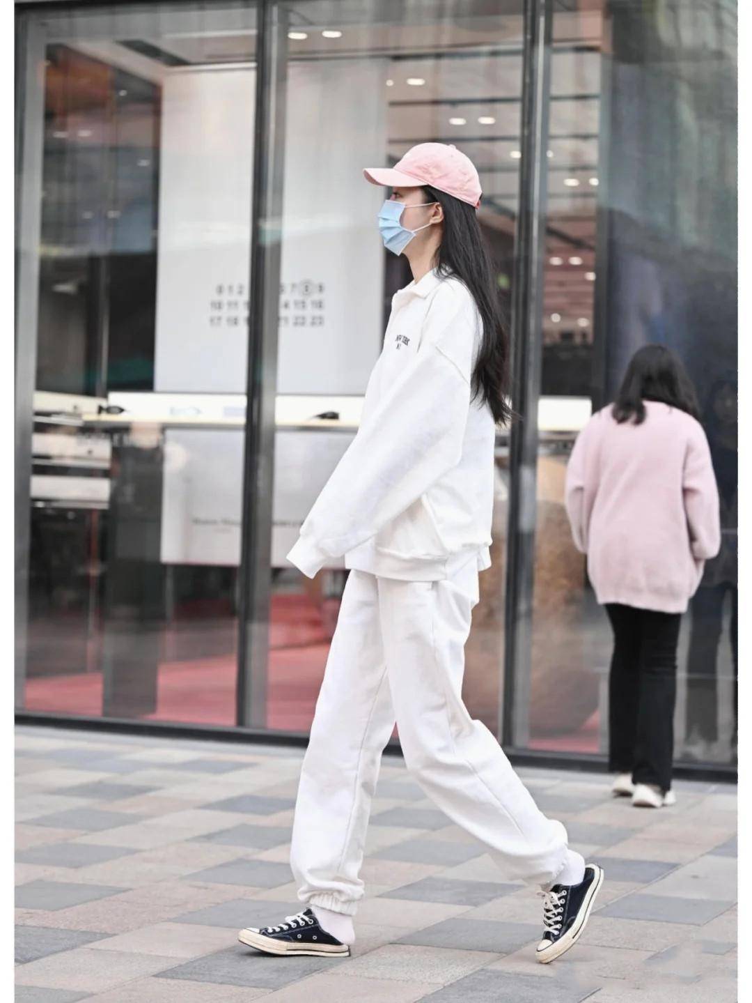 all white 也是簡約風中最常見的穿搭之一。一件白色Polo領衛衣搭配同款衛褲,腳上一雙藍色帆布鞋,慵懶瀟灑滿滿的春季的蓬勃生機,時髦又減齡;