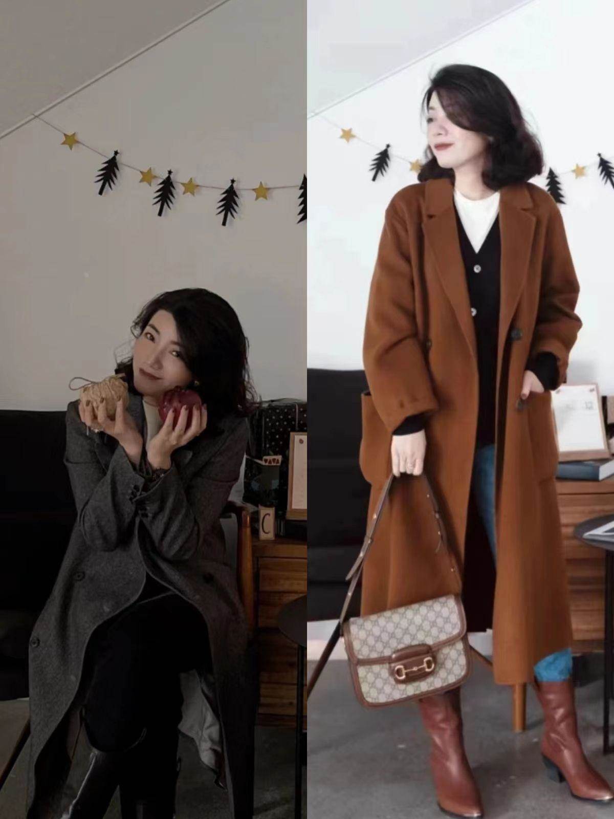 很多中年博主的大衣造型看似簡單,實則卻很講究,亮點大多在內搭上呈現出來,營造簡潔低調、不費勁又高級的穿衣效果。