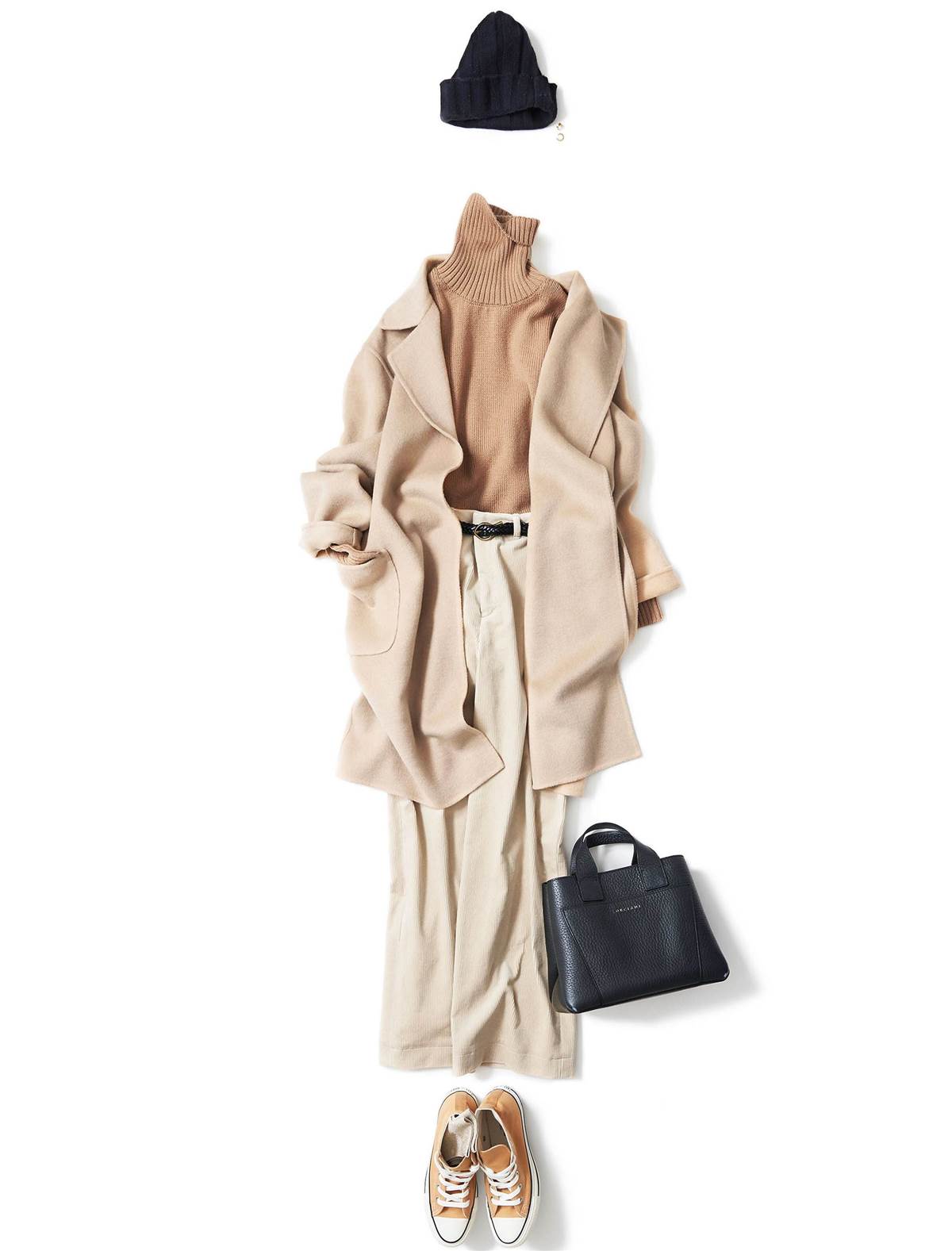 如下圖:米色調同色系衣服,溫柔雅致,它需要增加分量感才能達到完美。而分量感的來源就是配飾,鞋包、帽子、首飾等。風格、品牌、深色都是分量感的成員。