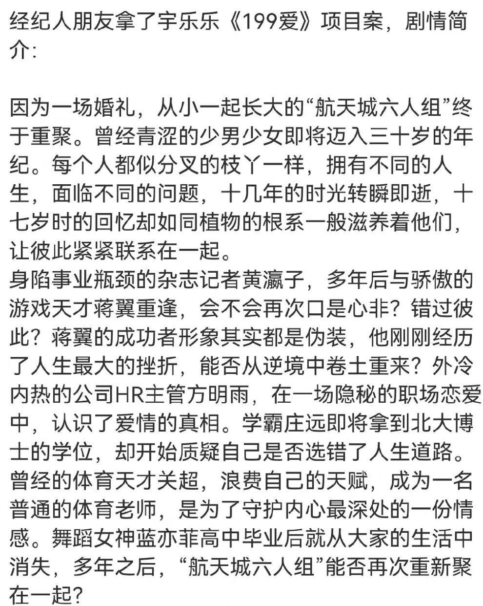 據悉,電視劇《199愛》預計將會在11月開機,而這部劇在演員陣容以及制作配置上都展現了絕對的爆款潛質。