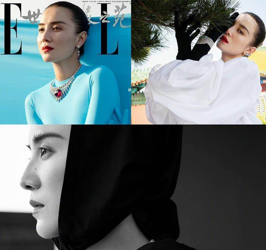 最近,著名的ELLE雜志邀請她拍了一組照片,基本也是這樣的妝容,就能勾勒出極為精致的輪廓。攝影師還很懂行,屢屢選擇側面拍,越發凸顯出宋佳的骨相美。