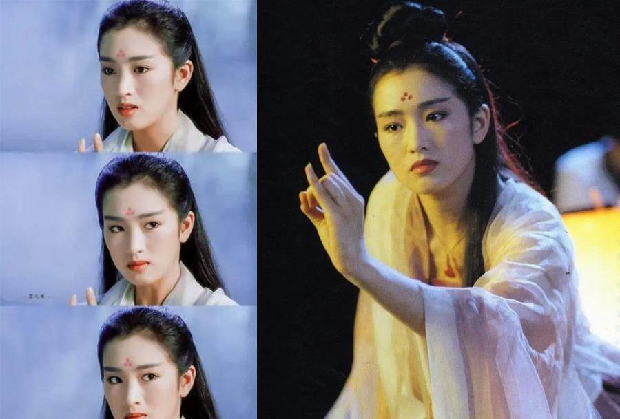 同款的還有林青霞,就因為骨相底子好,才經得起這「一梳到平」的髮型,與鞏俐在《天龍八部》成為經典的雙姝CP。