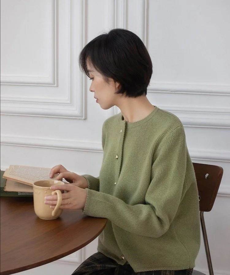 像這件綠色的毛衣開衫,在冷清的秋天使用,可以加入很生動的氛圍以及頗有生機的氣息,而這款服裝的包容性很強,不僅讓女性穿起來舒服,沒有方方面面的約束,還可以搭配多款種類不同的下裝。