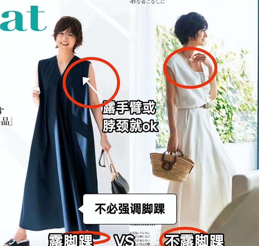 中老年露腳踝長裙和不露腳踝長裙其實差距不大,最關鍵的是要露出纖細的手臂和脖頸。這兩個位置不僅能增加搭配的輕松感,還能傳遞出一種得心應手的高級感。