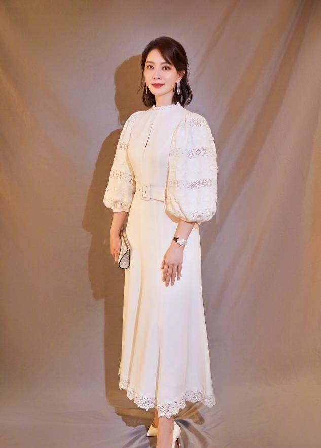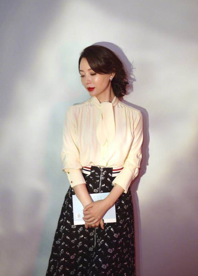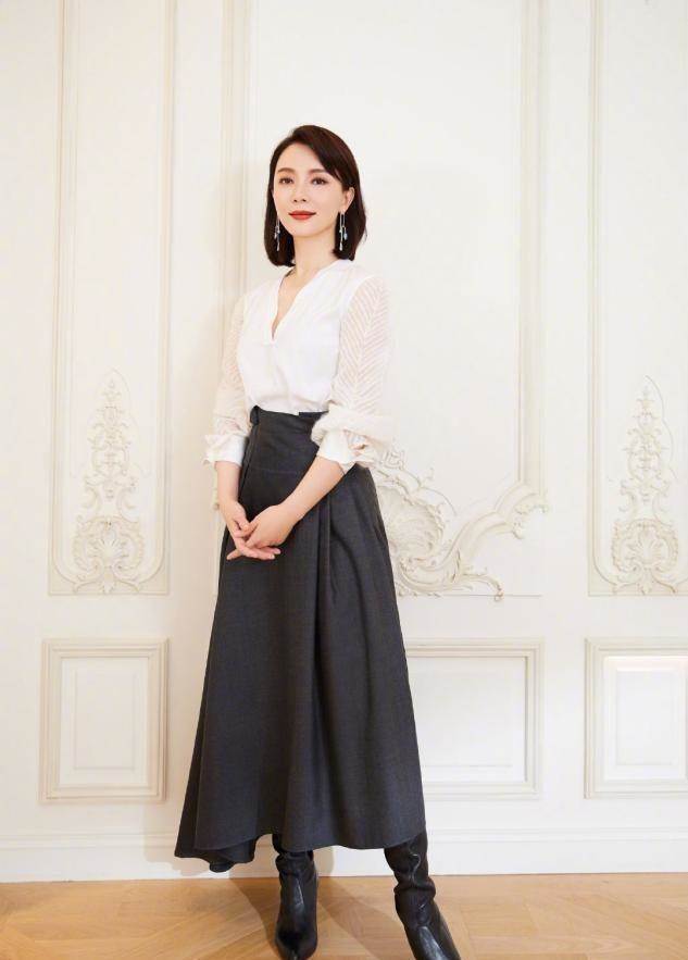 也可以學陳數這樣穿,淡雅的連衣裙配同色尖頭鞋,顏色一致,突出縱向的線條。但要注意,像黑色這類深沉、暗淡的顏色,一定要保證露膚,一方面選擇膝蓋附近的裙裝,露出細腿,另一方面選擇尖頭一腳蹬的鞋子,避免系帶等帶來阻斷感。