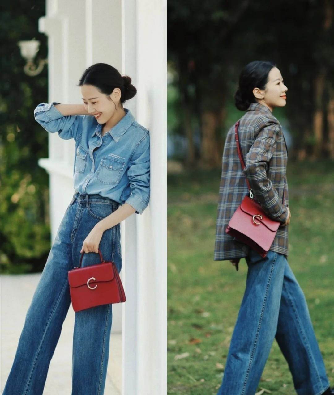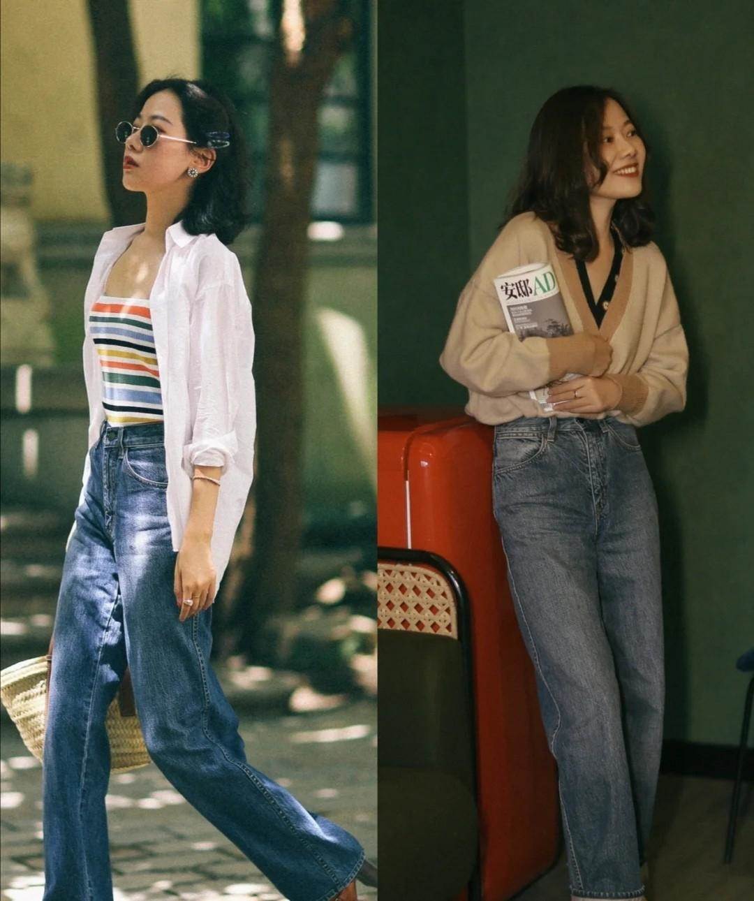 牛仔褲尤其是輪廓稍微寬一點的褲裝單品,對女性腿型的包容性自然更加出眾,對她們本身的年齡有沒有過多的要求,女性可以根據自己的穿衣靈感而選擇合適的上衣配合。