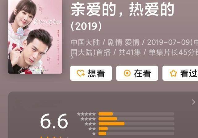 楊紫和李現主演的《親愛的熱愛的》評分6.6分,排名第5。