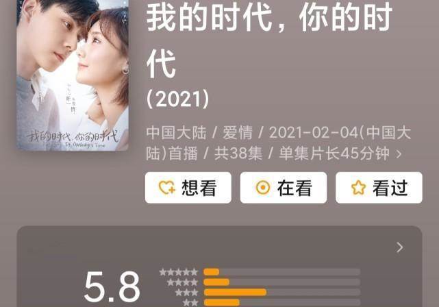 李一桐、胡一天主演的《我的時代你的時代》評分5.8分,排名第6。