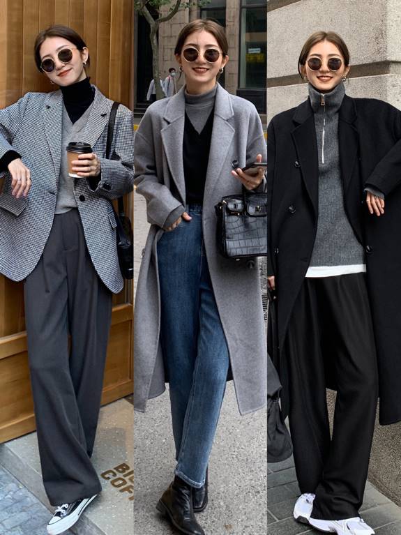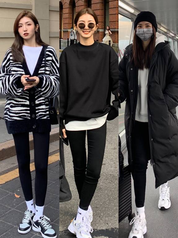 這樣的話會覺得比較休閑,但也有一些姐妹她們會去嘗試搭配大衣,這樣形成風格的混搭更加個性。