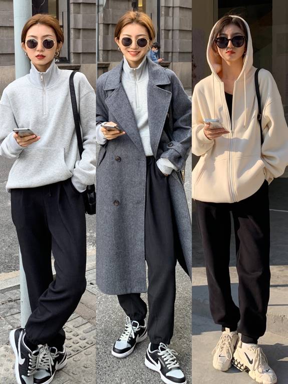 穿這種休閑運動褲,上半身也可以搭配不同風格的單品,比如有的女生喜歡穿休閑風的服裝,會去搭配衛衣。