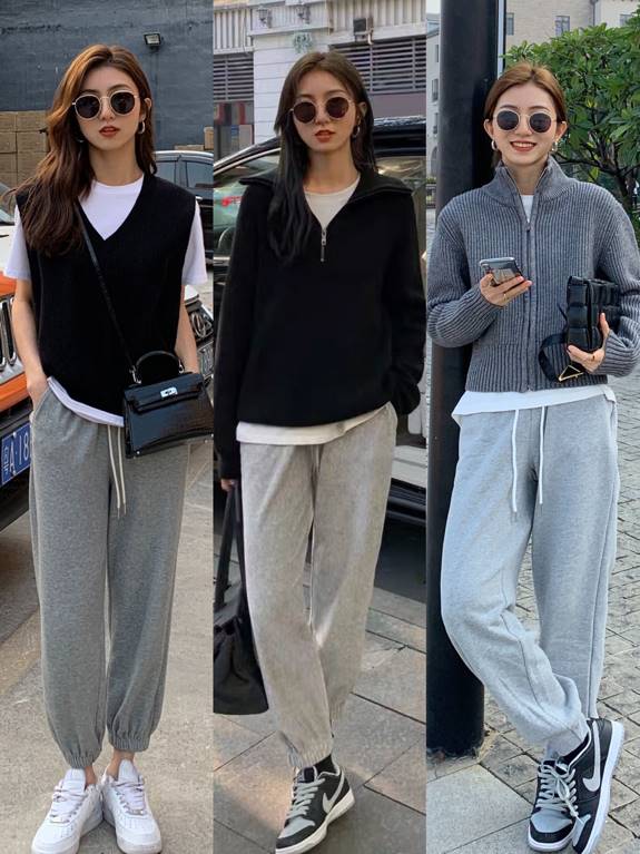 還有一些女生也可以嘗試這種寬松的運動褲,大家別聽到運動褲的名字就覺得俗氣老套,其實運動褲的穿搭還是蠻時尚的。