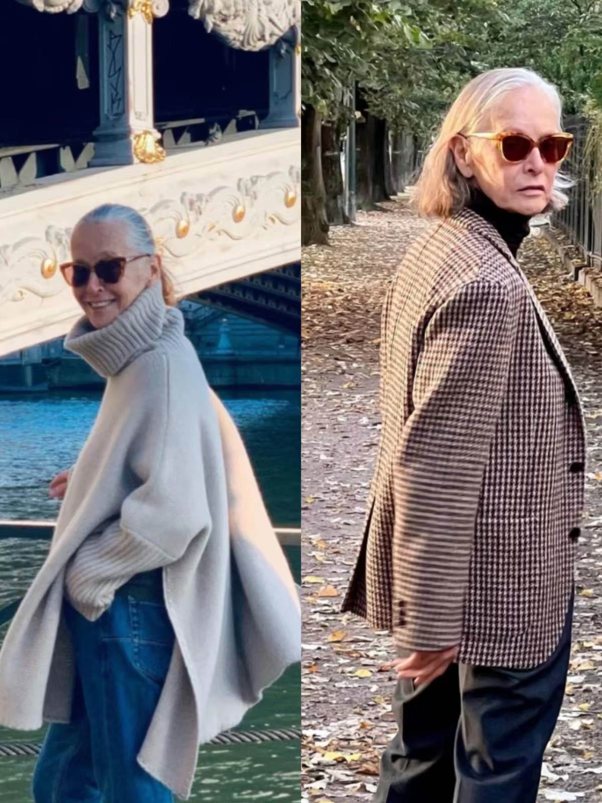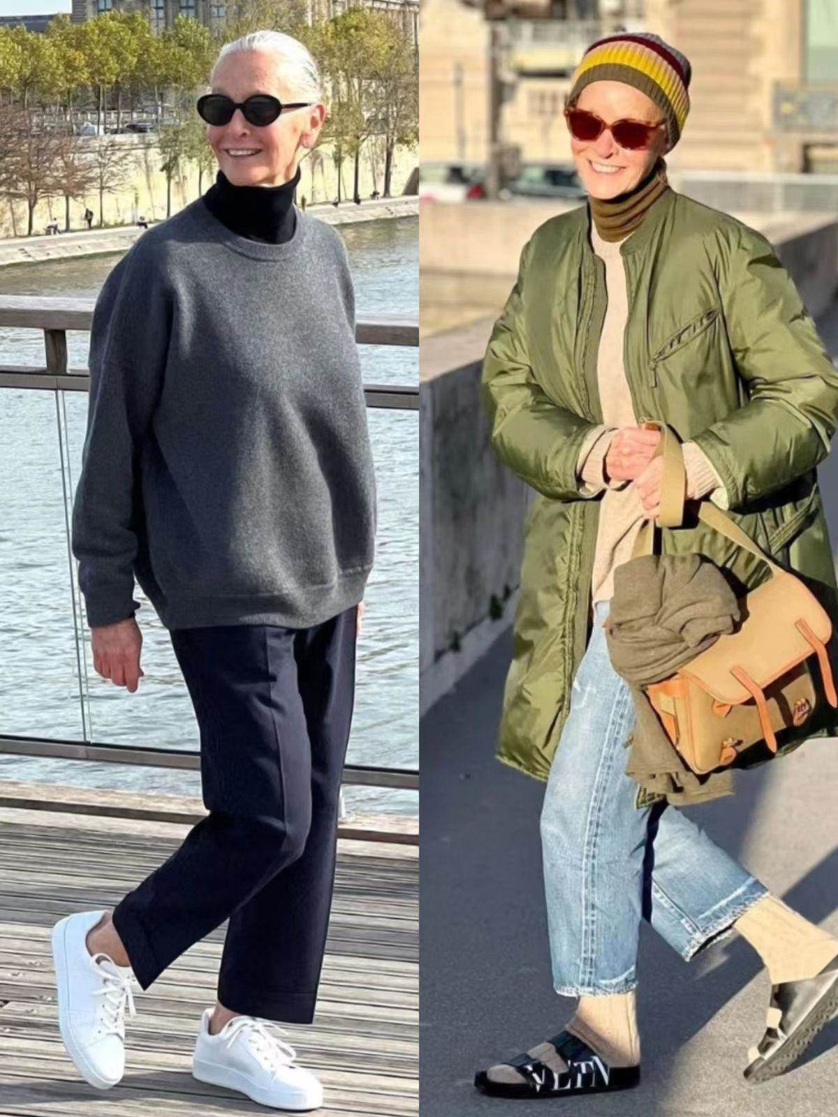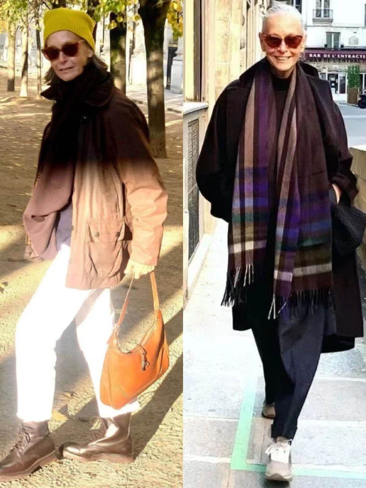 75歲的巴黎奶奶很愛美,不穿高跟鞋不露腿,照樣打扮得洋氣時髦
