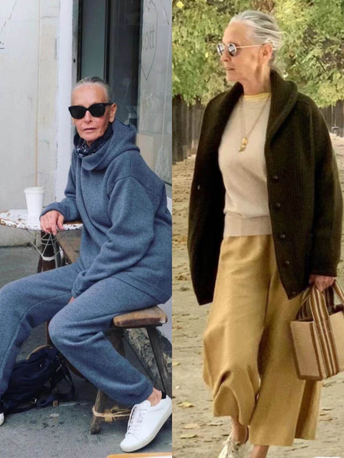 看看這位75歲奶奶,喜歡平底鞋、喜歡基礎款,結合揚長避短,年紀再大形象也優雅時髦。