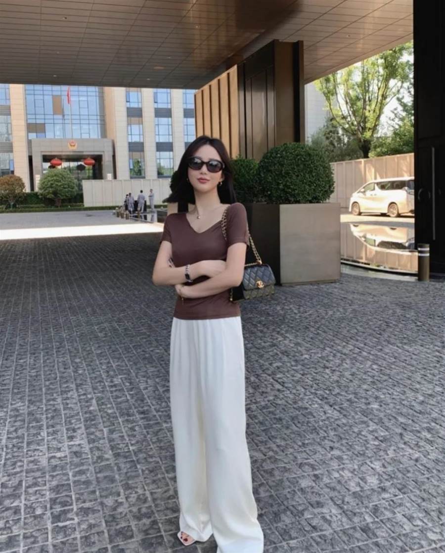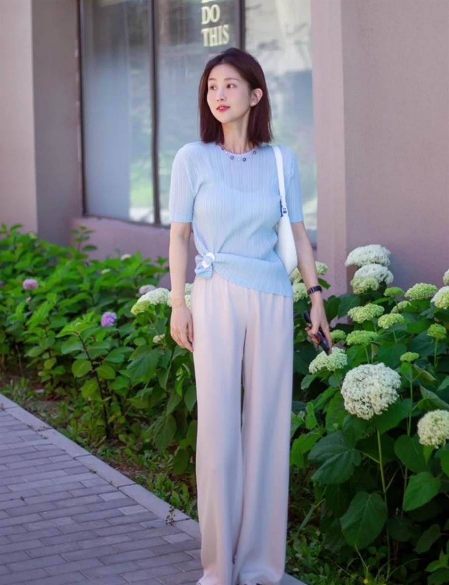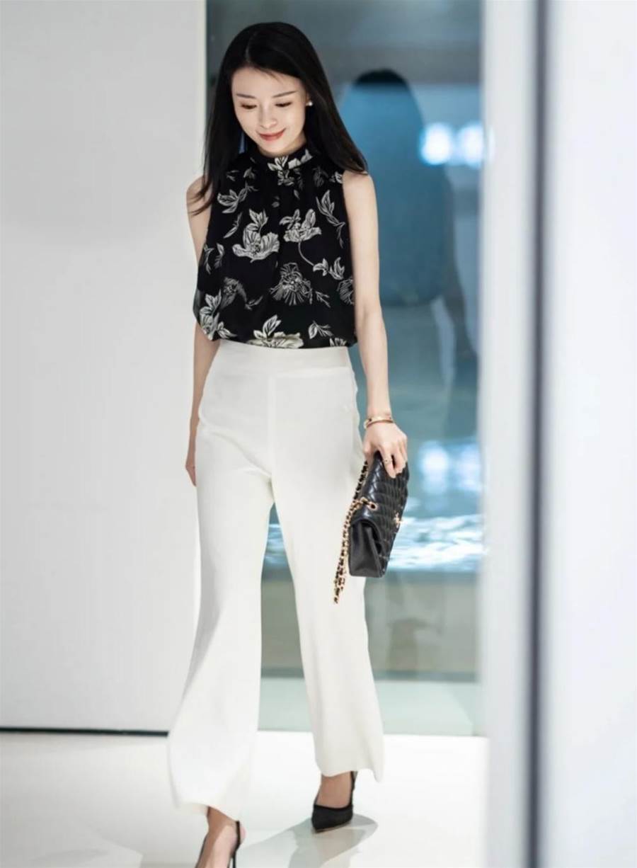 而如果是常規的款型或者是拖地的醋酸褲,所襯托的氣質就會比較優雅和自然,想要呈現更高挑纖細的身材,首先穿搭高跟或者低跟這一類具有直觀增高效果的鞋子更具完美襯托。