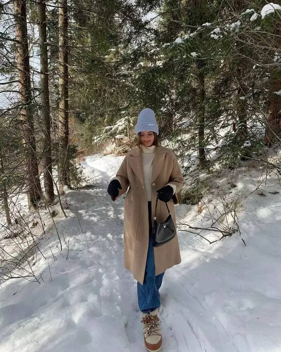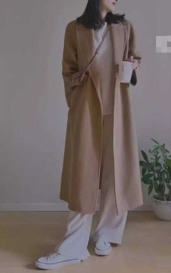 闊腿褲+小白鞋是冬季王炸級別的時髦套裝,超長的褲管可以隱藏鞋幫,保暖又防風,配上一件經典卡其色大衣,讓女人瞬間擁有颯爽英姿。
