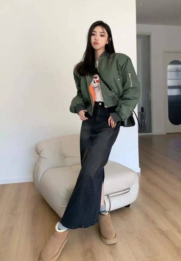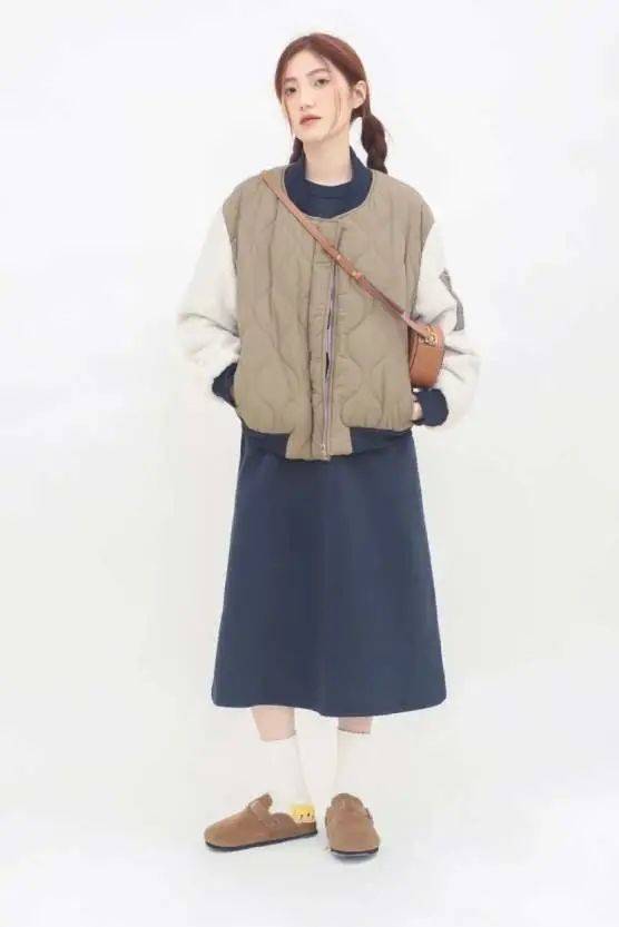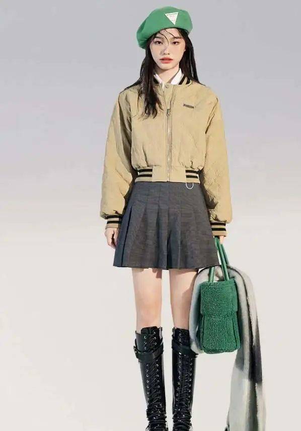 棒球棉服+裙子的穿搭組合在今年的秋冬季節真的非常推薦大家優選搭配起來哦,能夠盡可能地顯高又顯瘦的魅力真的很值得運用和搭配起來