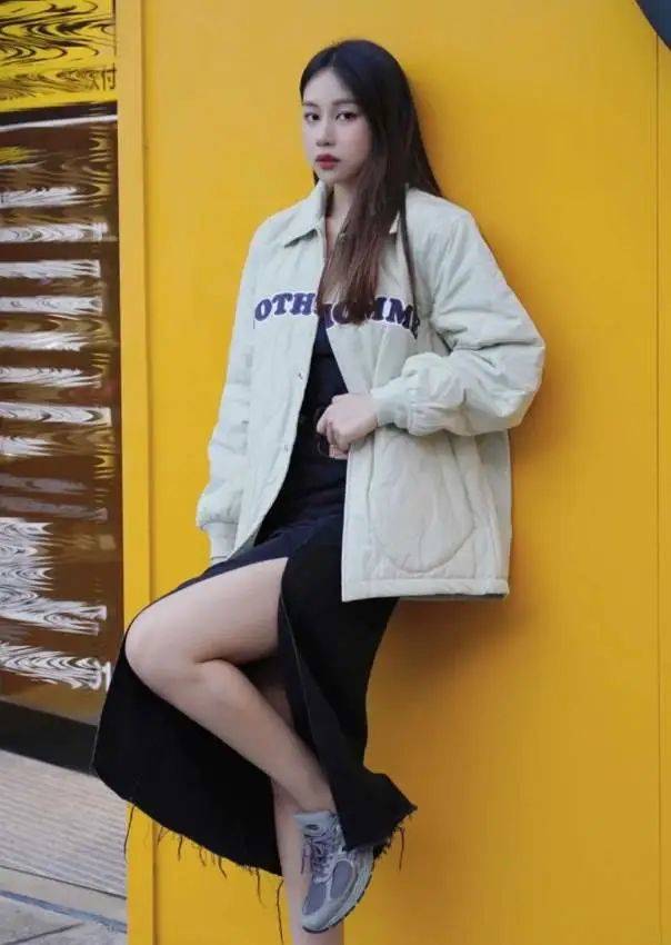 棒球棉服和裙裝的搭配將整體的線條感要保證和營造出來絕對明顯的流暢和修直感哦,可以最大程度的削弱身形的微胖感和小贅肉,呈現修直利落的身材走向,真的很適宜優選搭配了。