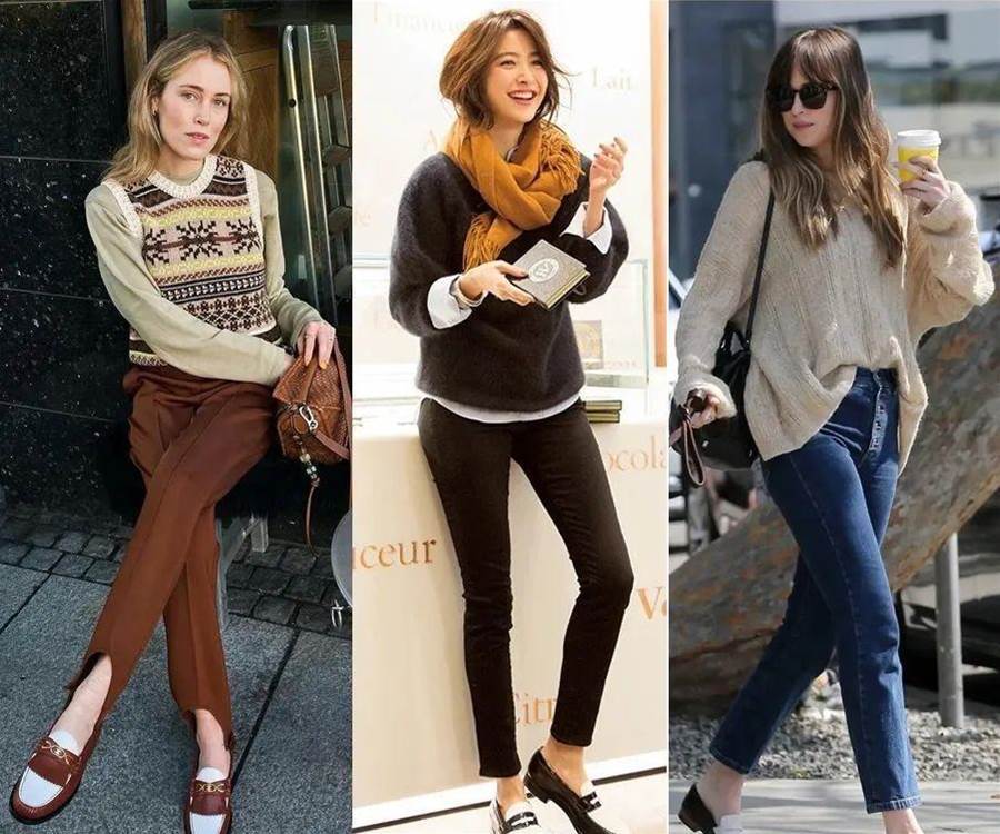 秋冬的鞋子怎麼少得了真正的「百搭之王」——樂福鞋呢,馬丁靴在它的面前都黯然失色,分有平頭、低跟、一腳蹬、綁帶的款式,輕便簡單、容易穿脫。樂福鞋的款式雖簡單但不會平庸,柔軟的皮質,上腳舒適感極佳,在秋冬季節,再搭配上黑絲襪,真的非常顯腿長!