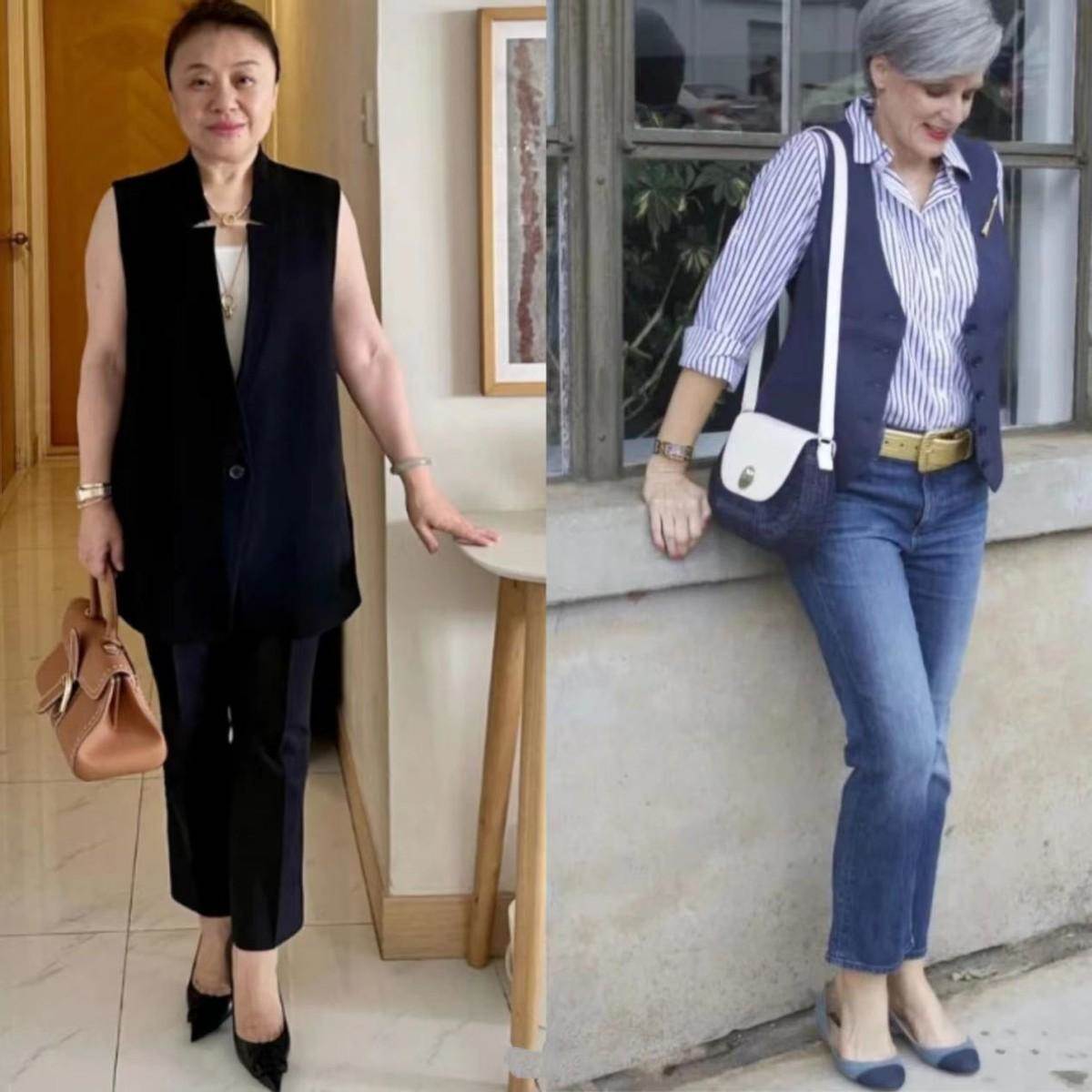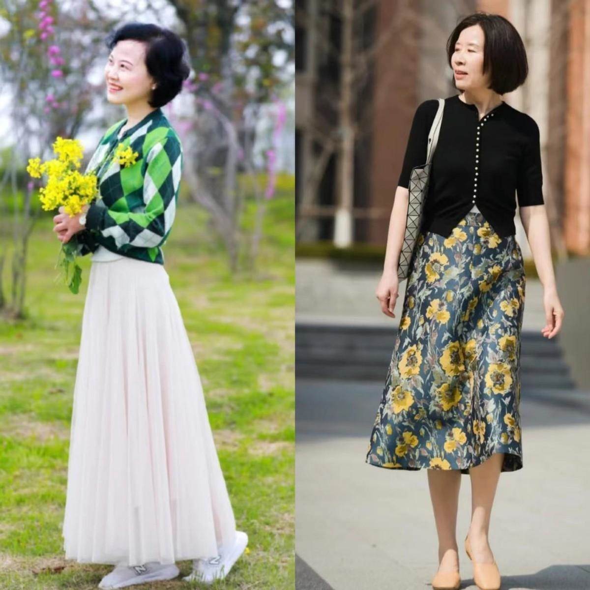 看看博主邢文這兩套搭配,都完美呈現出大齡女人優雅別致的氣質,美麗而又年輕。