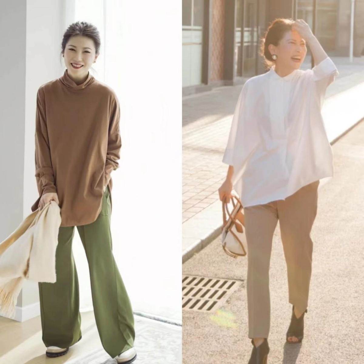 比起花哨俗艷的老年裝,上面這類舒適寬松的純色服飾,才是中老年人該買的服飾。到了秋天,就用咖色半高領針織衫、白襯衫、闊腿褲取代鋪滿俗艷花卉圖案的單品吧。