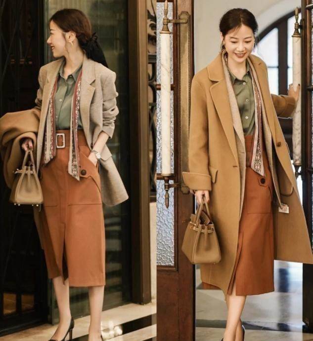 把修身的褲裝換做過膝長度的半裙,我們可以快速把握到漂亮穿搭輪廓的展示。尤其是加長款的大衣和過膝闊擺裙的組合,提供了足夠的穿衣容量,腿粗和臀寬女人穿起來也特別舒適,輕松打造高雅風格。