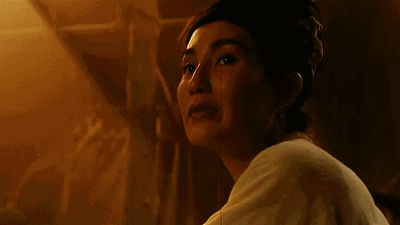 在經歷了背叛之后,她逐漸黑化,沒有飛揚的眼線、沒有夸張的服裝造型,只靠眼波流轉就將人物內心的轉變表現出來。