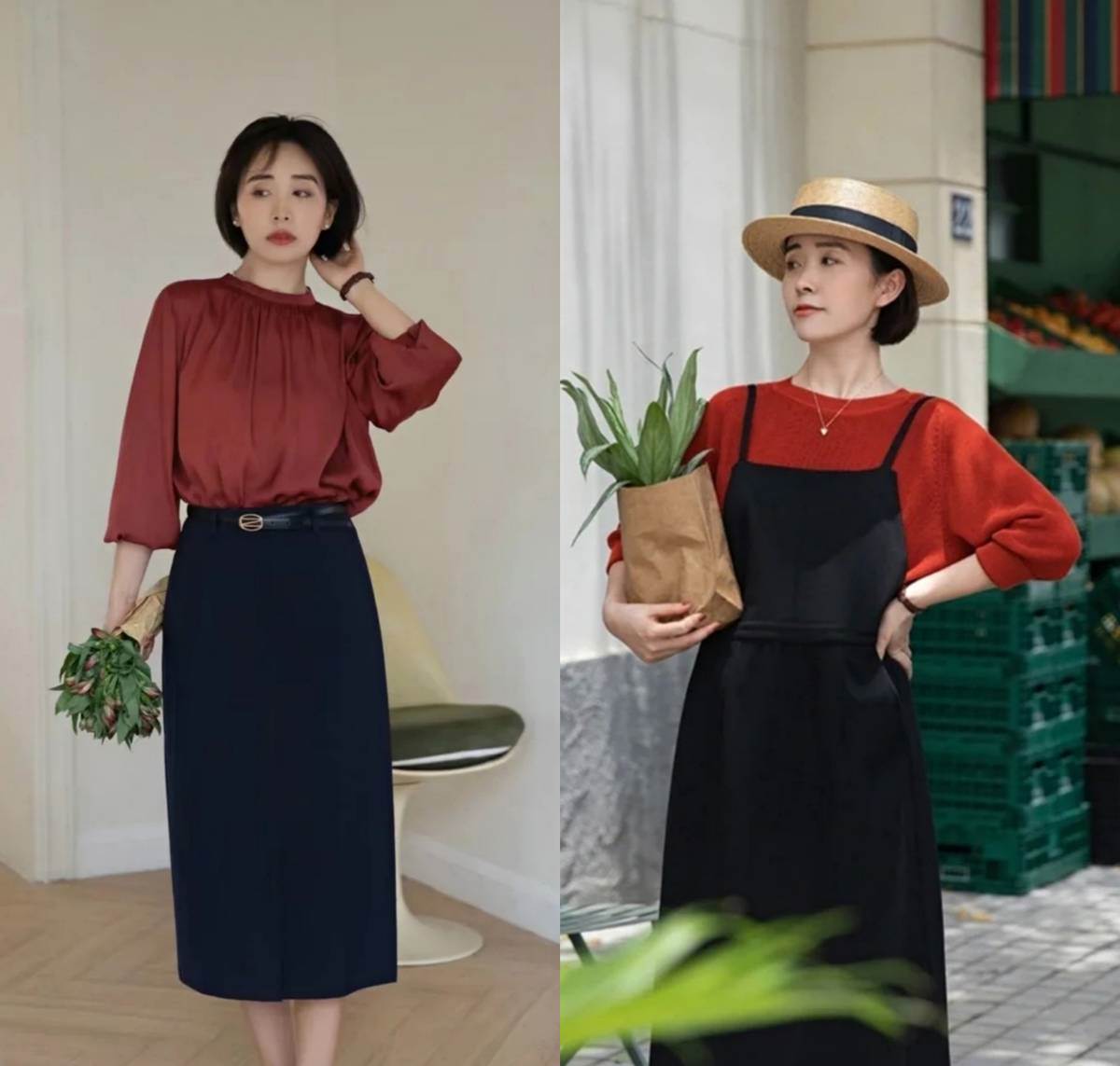 紅色的襯衫,它就會具備更高一點的視覺沖擊性,防止每日的襯衫穿搭都過分的一致。搭配一款黑色直筒裙,也可以顯得整個人端莊很多。