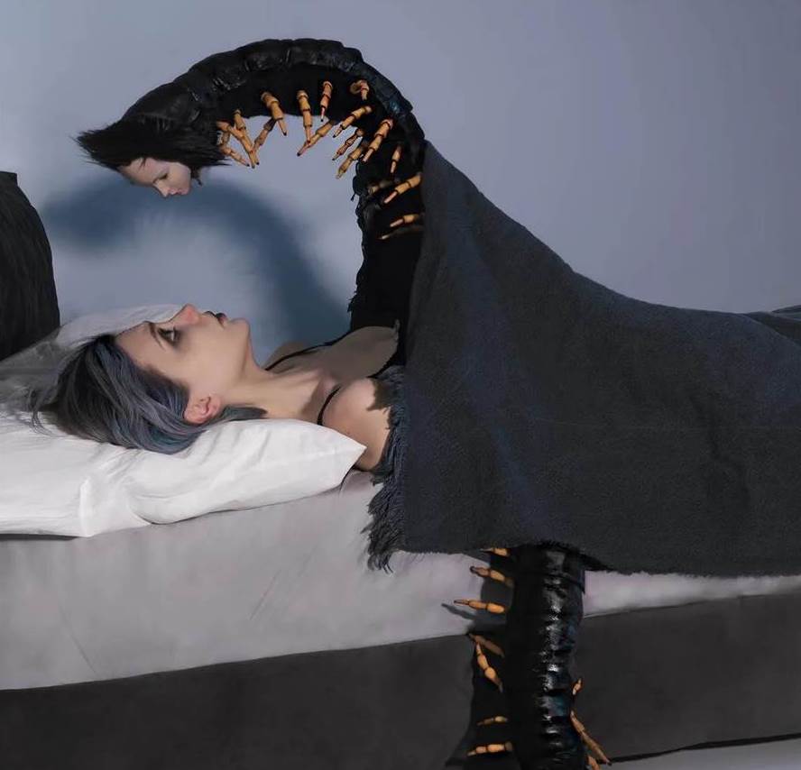 這些作品涉及諸多領域,一會仿佛置身于科幻世界,一會又仿佛在夢境中似曾相識,她將自己的身體當做創作的畫布,不斷地探求潛意識中的心理表達。