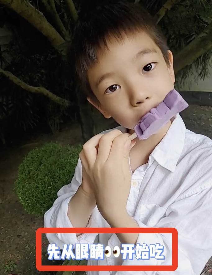 霍思燕曬兒子吃雪糕,嗯哼近期瘦出瓜子臉,網友直呼:「翻版」杜江,基因不服不行