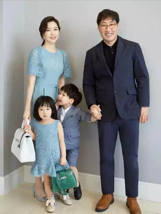 不同場合順應的穿搭風格也不同,出席隆重、正式場合時,適合禮服造型。李英愛搭這件淺灰藍色蕾絲拼接連衣裙將她溫柔、優雅的氣質完美展現,女兒選擇和她同色的小裙子提升和諧度,上面的蕾絲元素與荷葉邊顯得甜美可愛又不失精致,老公和兒子,一個深灰色西裝,黑襯衫,一個灰色西裝,白襯衫,通過同色系的色彩加強聯系,但又利用深淺不同,展現老公沉穩、兒子率真可愛的氣質,一家人有愛的同時,又各自散發著魅力。