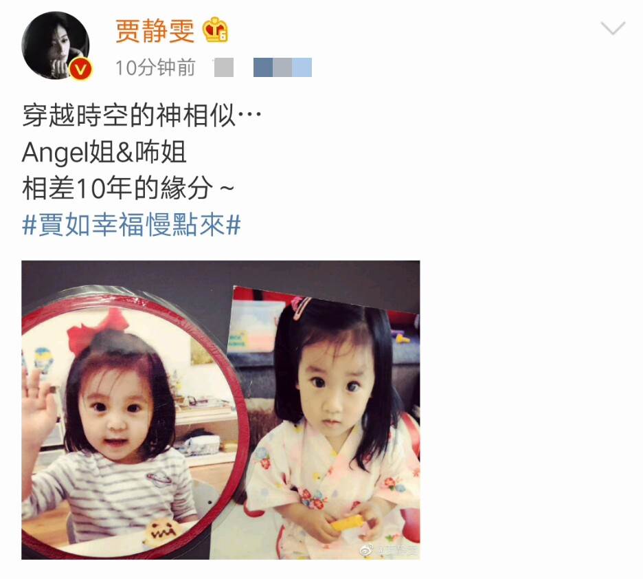 其實賈靜雯不止一次地感慨過姐妹倆長得像,幾年前她就發文稱兩個女兒有著穿越時空的相似。