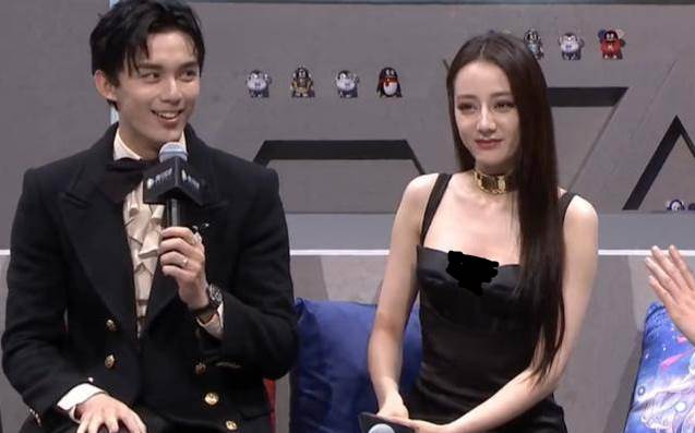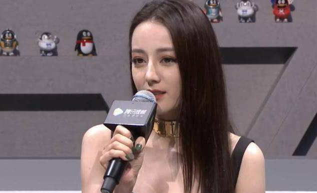 有一次熱巴穿的是黑色禮服,算是寬肩帶的,不過當熱巴在坐著接受采訪的時候,她就發生了一個比較小的意外。