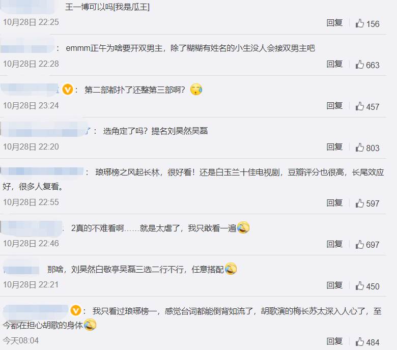 不過話說回來,《瑯琊榜3》雖然在情節設定上都穩住了看點,但在演員選角上卻犯了難。很多觀眾認為「除了糊糊,有姓名的小生沒人會接雙男主吧」,但其實像《瑯琊榜3》這樣的配置即便是頂流也有爭取角色的意向,《瑯琊榜3》的問題不在于沒人演,而在于如何選擇適合的演員并且超越《瑯琊榜》的配置。
