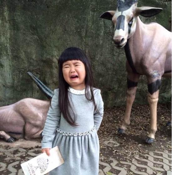 曹格女兒Grace的顏值在節目中一直被大家詬病,圓圓的臉上,五官都小小的,擠成一團,看著像個小包子似的。