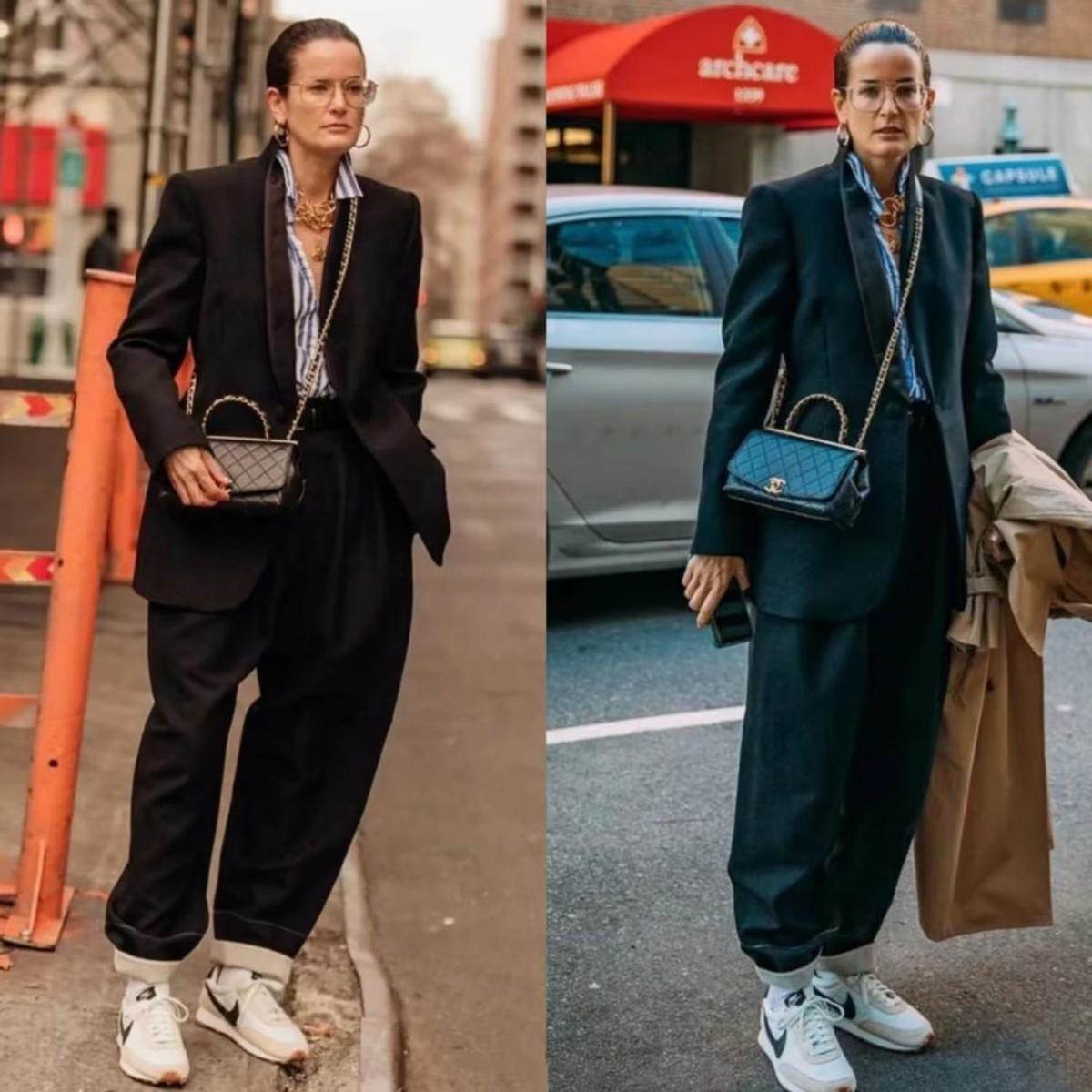 可以看到,上面這兩位時髦博主所穿的西服都很經典高級,版型挺闊而立體,穿在身上很好凸顯出高級氣場,匹配牛仔褲時,混搭球鞋或者樂福鞋,都足夠摩登大氣。