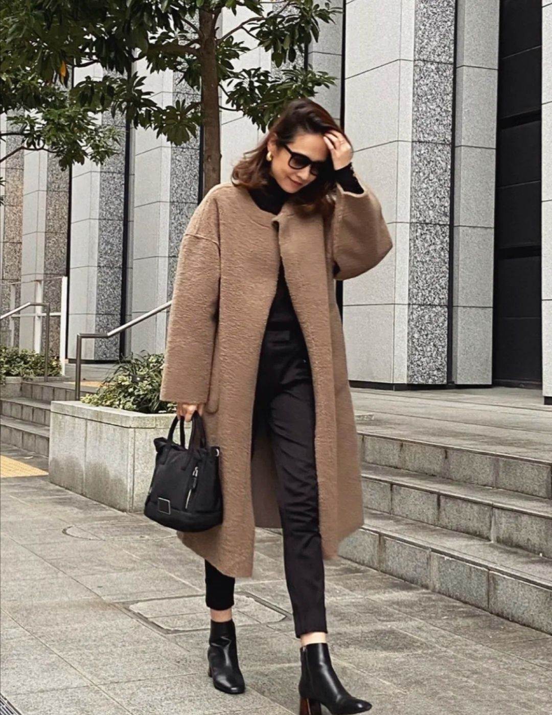 如果女性還在思考冬天的服裝搭配,不妨直接利用長款大衣和黑色九分褲組成一套穿搭范例,以此來烘托出個人很大氣的一面和有點隨性但十分得體的形象。