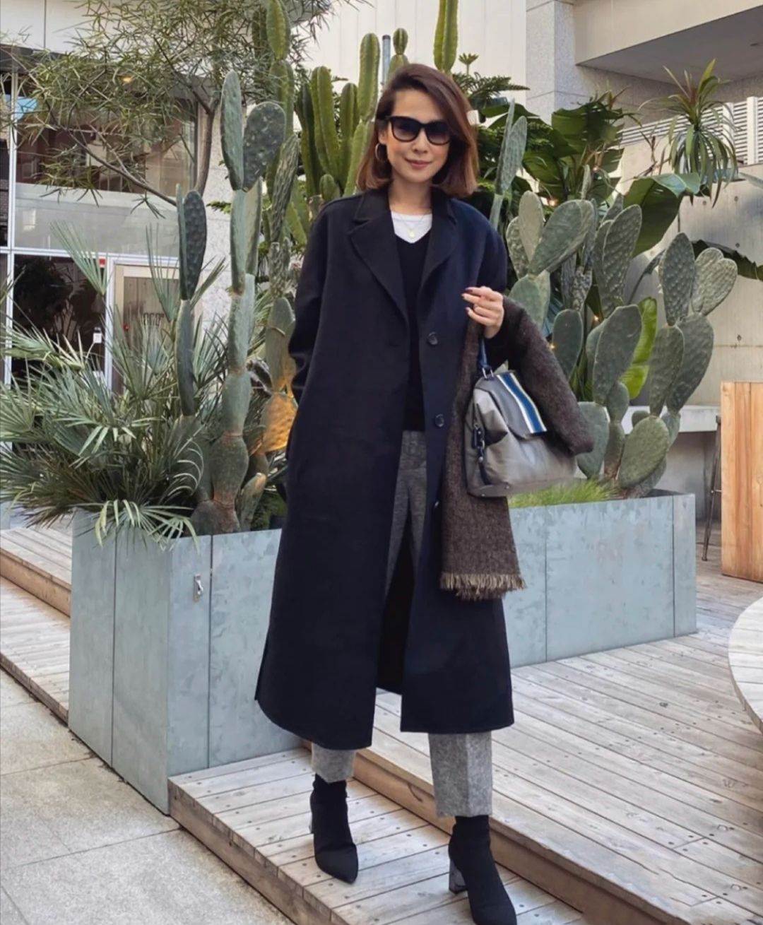 今年流行一種穿搭,叫「長大衣+九分褲」,四五十歲穿顯瘦又減齡