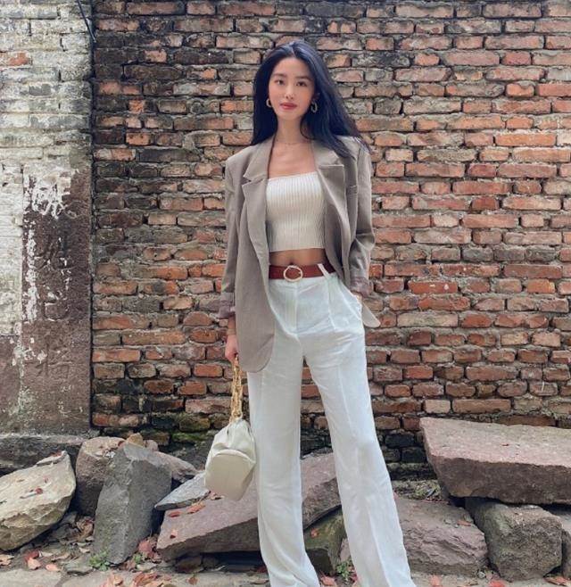 因為短款修身的上衣會讓上身的線條顯得非常清晰,顯瘦感強;下半身主打高腰、寬松、垂順的下裝,強烈的對比,會顯得腰特別細,腿特別長!