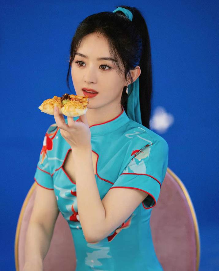 除了我們上面提到的兩點之外,趙麗穎身上的這一件旗袍在裙擺處還融入了小荷葉邊元素,隨著褶皺的增加,可以讓造型看上去更有立體層次效果,與短裙擺搭配在一起,豐富了造型元素的同時,又可以很好的體現出滿滿的少女風情。