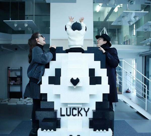 兩歲生日時,李承鉉為女兒搭建超大貓熊積木↓