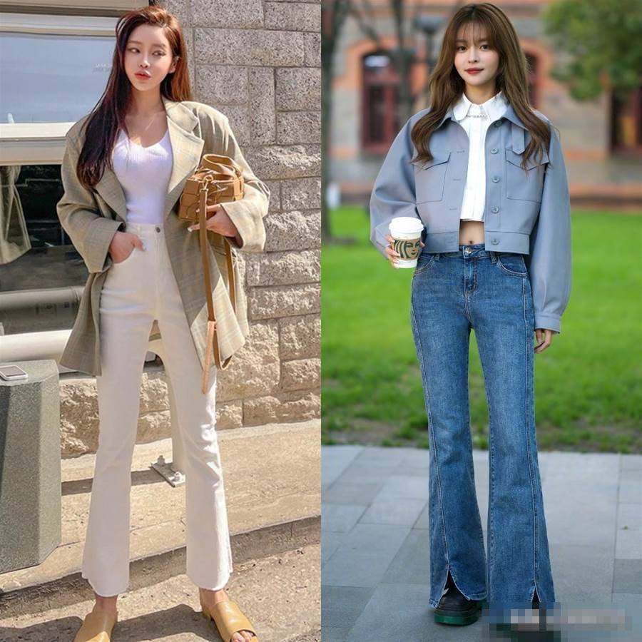 和喇叭褲一樣的「上窄下寬」理念,但是不會像喇叭褲那麼夸張;那麼難駕馭,更像一個倒立的樣式,對于小腿粗的女生來說,茶杯褲是一條穿上就能擁有纖細美腿的「神褲。