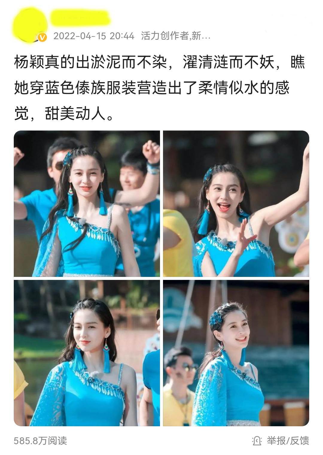 近日一娛樂大V曝光了一組baby傣族服裝造型大片。