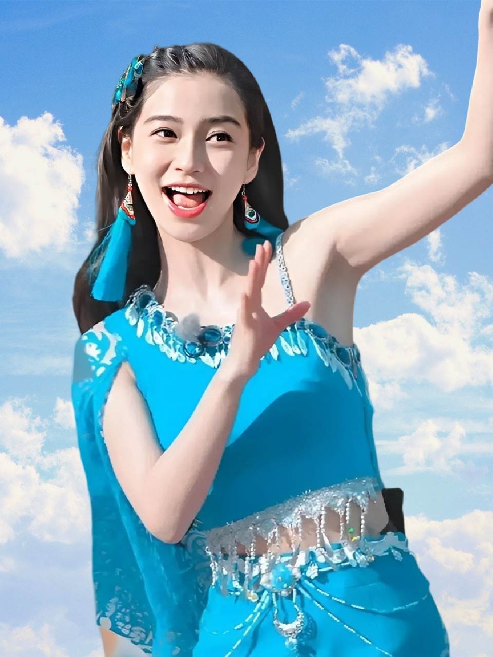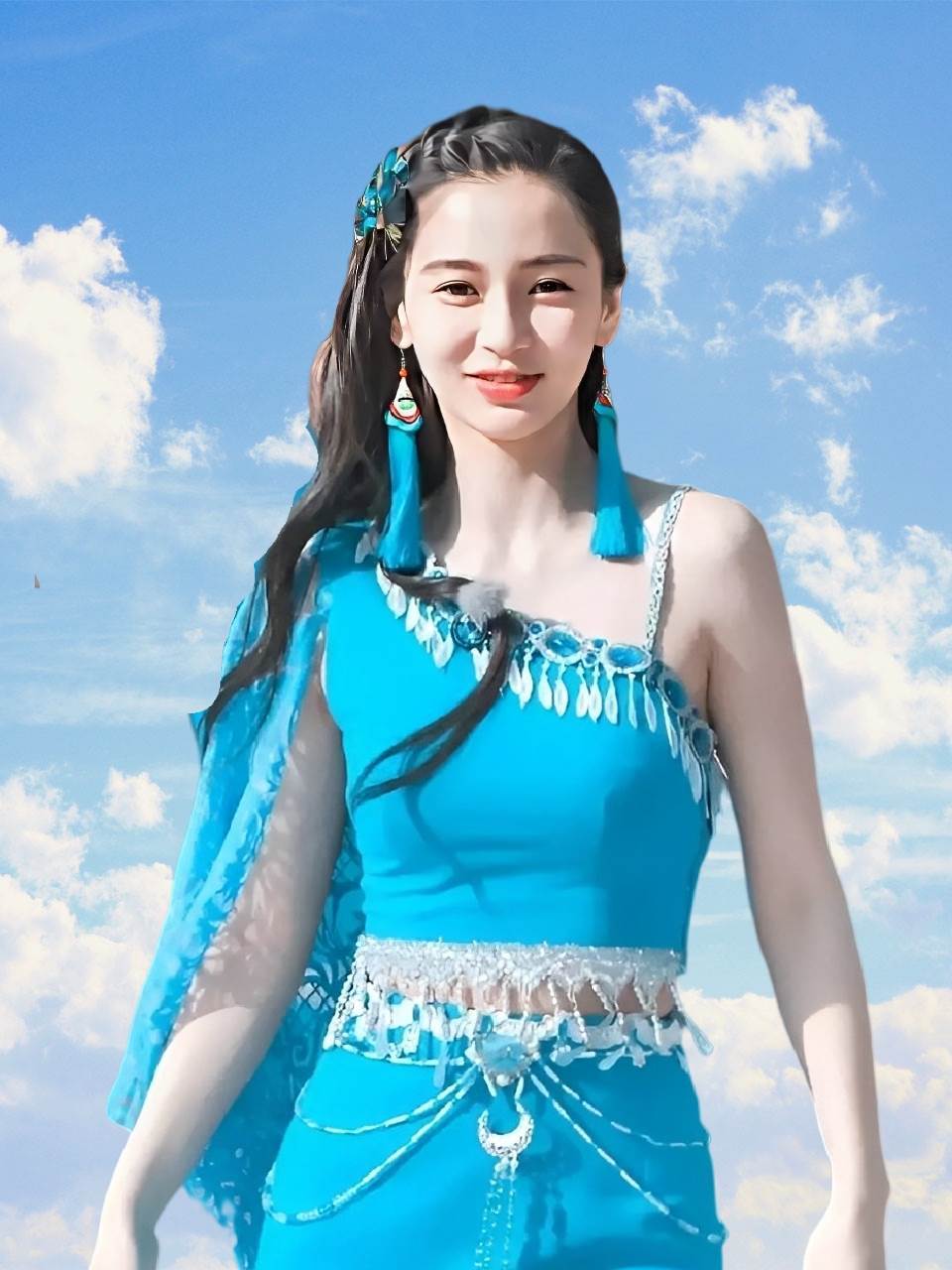 畫面中的baby穿著一件天藍色傣族長裙,民族氣息十分濃厚,并且顯得十分的清新自然,甜美的氣息更是迎面撲來,不得不說,baby的顏值真的十分抗打,就沒發現她顏值掉過線。