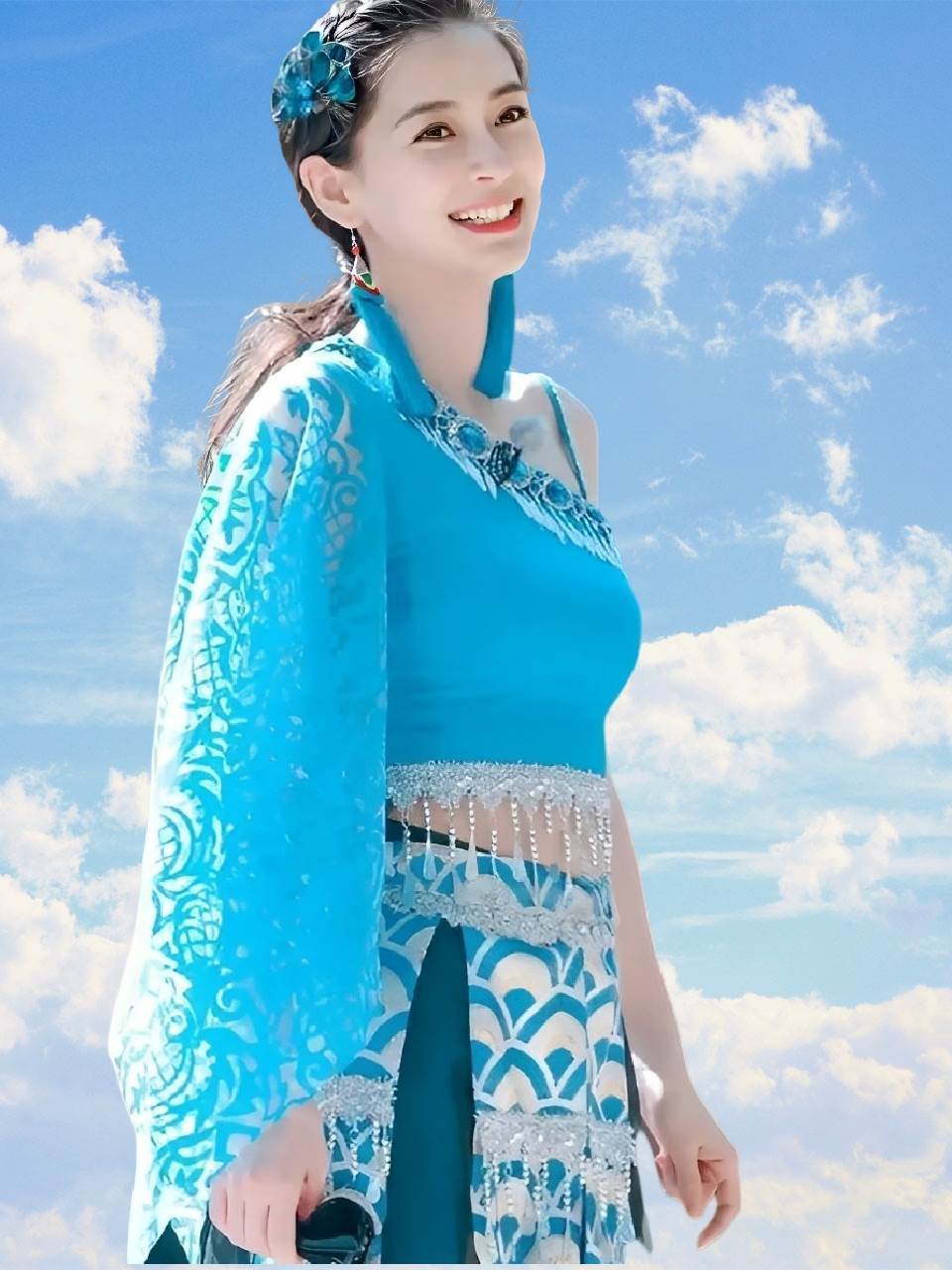 俏麗的傣族服飾、側分的公主發型,再加上甜甜的笑容,一個風情萬種的俏佳人出現在我們面前,魅力無窮的她一下子成了民族時尚女王,簡直美到有些犯規。