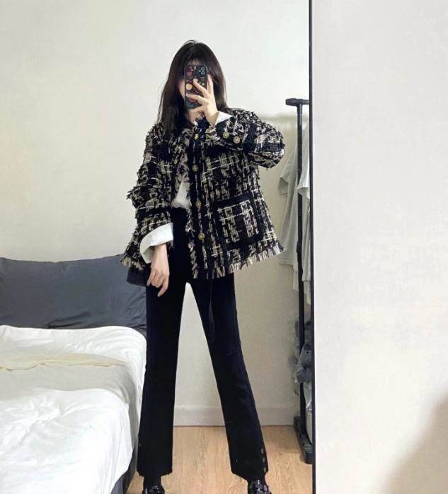身材瘦小的女生穿搭小香外套有一定的優勢,本身的寬肩線條可以增加你的骨骼飽滿度,選擇淺色系更容易豐滿整體的線條,搭配修身直筒褲或者闊腿直筒褲,冬季都保暖又顯高級。
