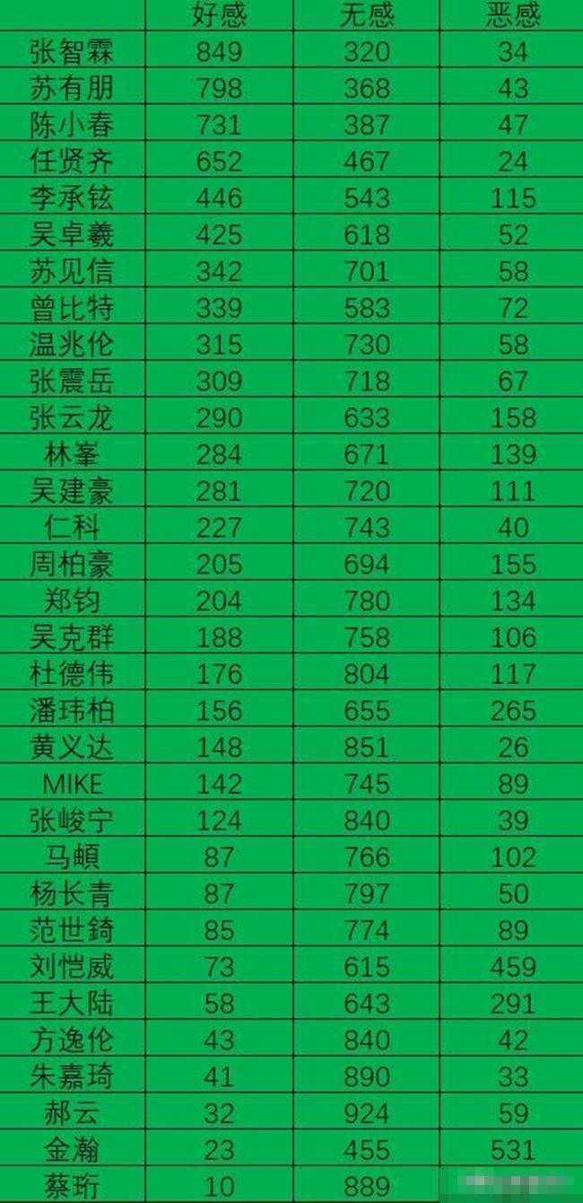 這些人有一個共同點,那就是無感的票數偏多,不過也留下了靠舞台圈粉的空間。