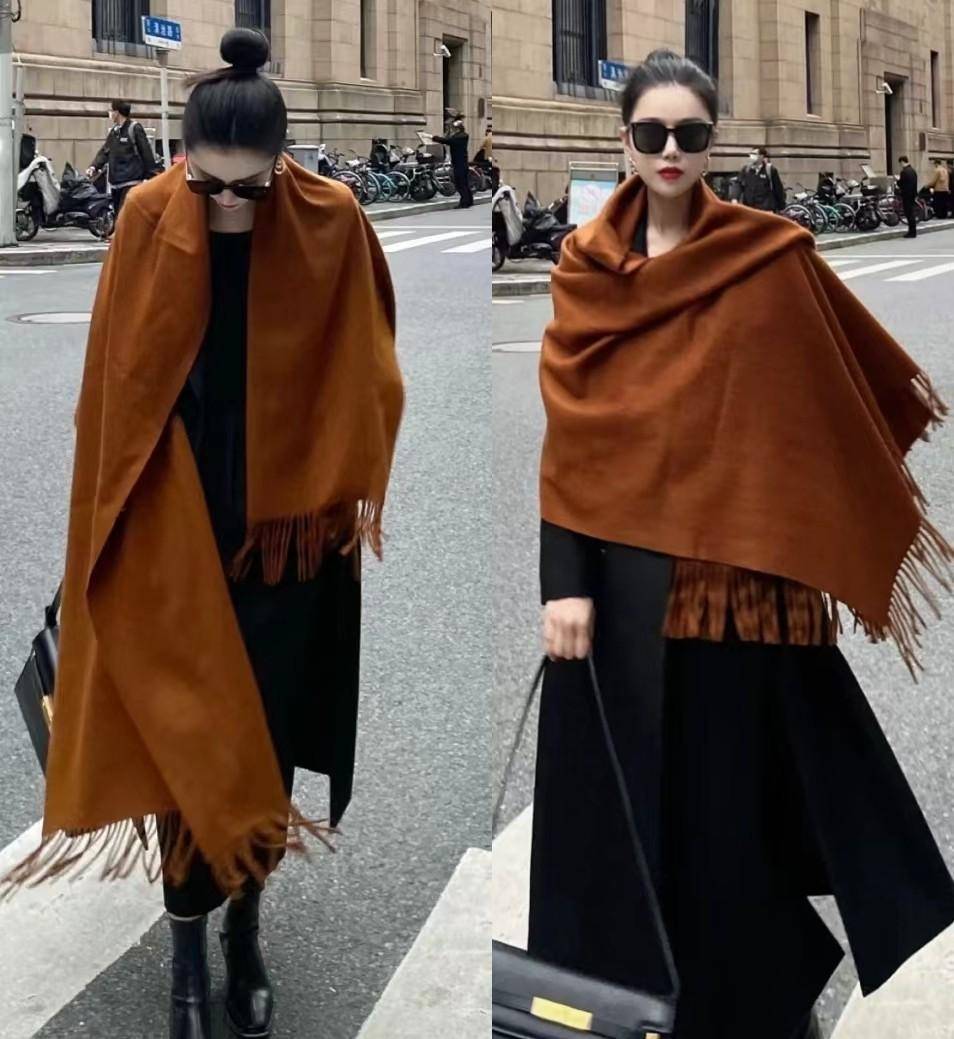 也正是因為流蘇圍巾自身足夠時髦,屬于怎麼搭都洋氣的存在