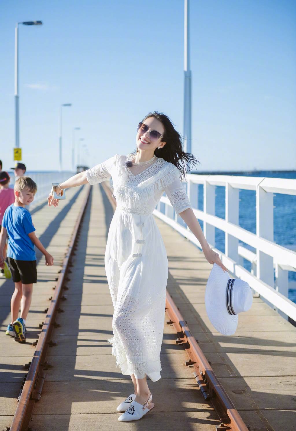 海邊出游怎麼穿?章子怡給出了答案,以白色為底色橘色作為點綴的披巾,富有濃濃的藝術氣息。搭配白色牛仔褲,緊身的版型展現出纖細的雙腿。笑容洋溢,雖然已經中年,但章子怡依然保持著很好的狀態,精氣神滿滿。