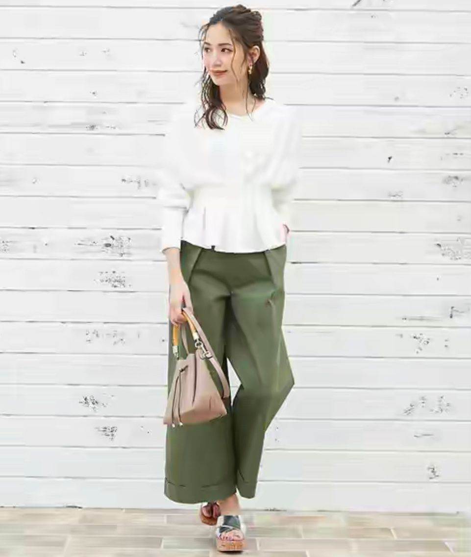 中年女人的身材短板主要就集中在腰部以下,所以想要最大程度的隱藏不足之處,不僅要學會如何挑選上衣,褲裝的搭配也很關鍵。像這種下擺收緊的上衣,能夠恰好掐出腰線,再搭配上寬松的闊腿褲,對于下半身的包容性是非常好的,而且這種組合方式,對于身形的修飾也很不錯。